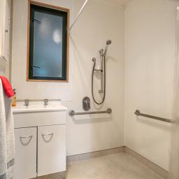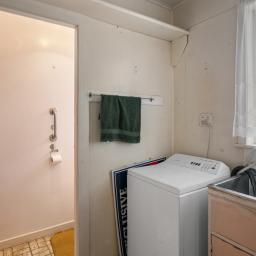 The bathroom comprises a wet-floor shower with a separate toilet and there is also a separate laundry.