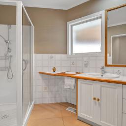 The master suite and dedicated study are conveniently located on the main living level, while a separate wing accommodates two further bedrooms and a well-appointed bathroom, offering privacy for family or guests. Additional features include a double garage, workshop, and central gas heating for comfort in every season.