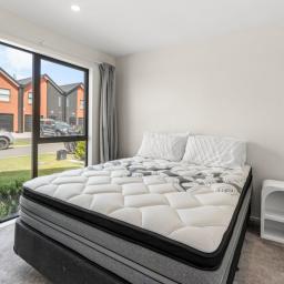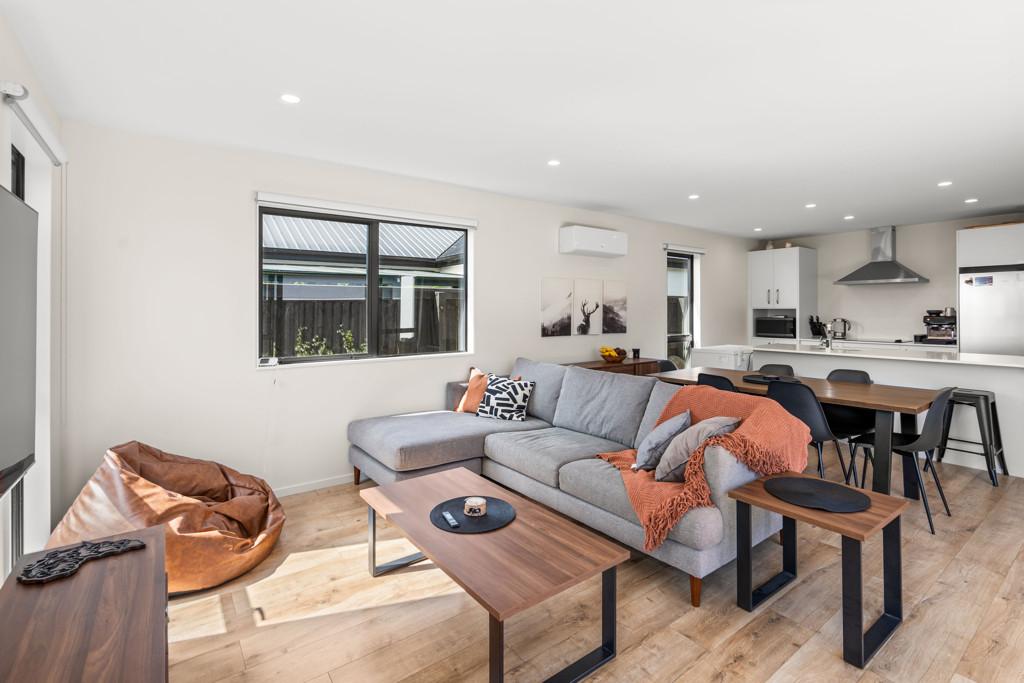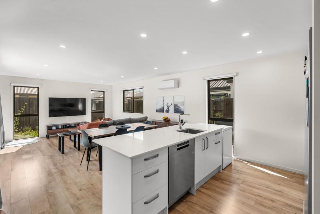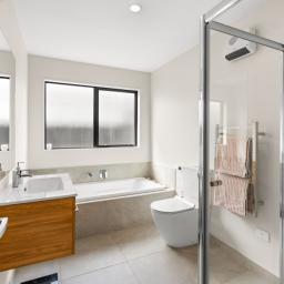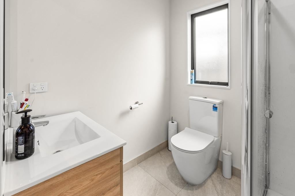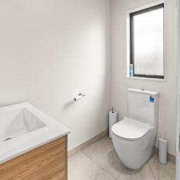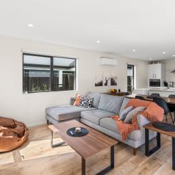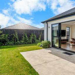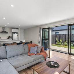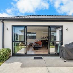 The home offers three generous double bedrooms with built-in wardrobes, including a master suite complete with an ensuite and sliding door access to the patio. A well-appointed family bathroom with a built-in bath and separate shower easily caters to both busy mornings and relaxed evenings. Comfort is uncompromised with a heat pump, advanced double glazing incorporating low-E glass and argon gas, thermally broken aluminium joinery, superior insulation, and 2.2m high polycore internal doors ensuring temperature control throughout the home.