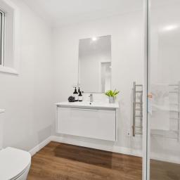 The master suite is a true retreat, complete with a walk-in robe and a sleek ensuite.