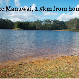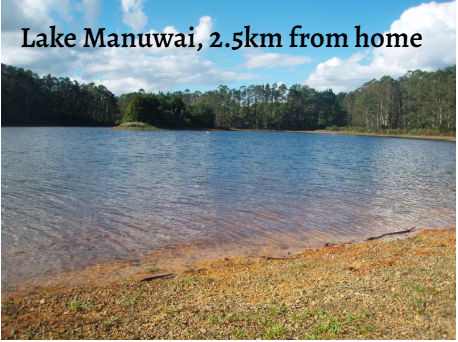 Lake Manuwai is 2.5 km up the road, for all sorts of recreation.