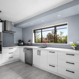 The heart of the home is the spacious, remodelled kitchen, flowing seamlessly into the dining area and sizeable living room. With a north-facing aspect, this space is filled with natural light and opens onto the front patio, an ideal spot to unwind at the end of the day, glass in hand, as the sun illuminates the caps of the Hawkdun Range.