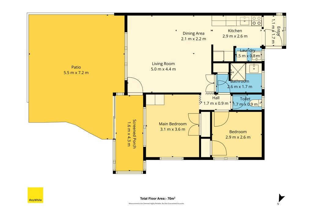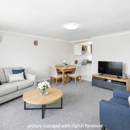 Featuring two bedrooms and a spacious open plan living and dining area, providing a light and practical space for everyday living. The layout includes a separate toilet an dedicated laundry area.