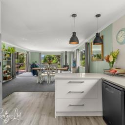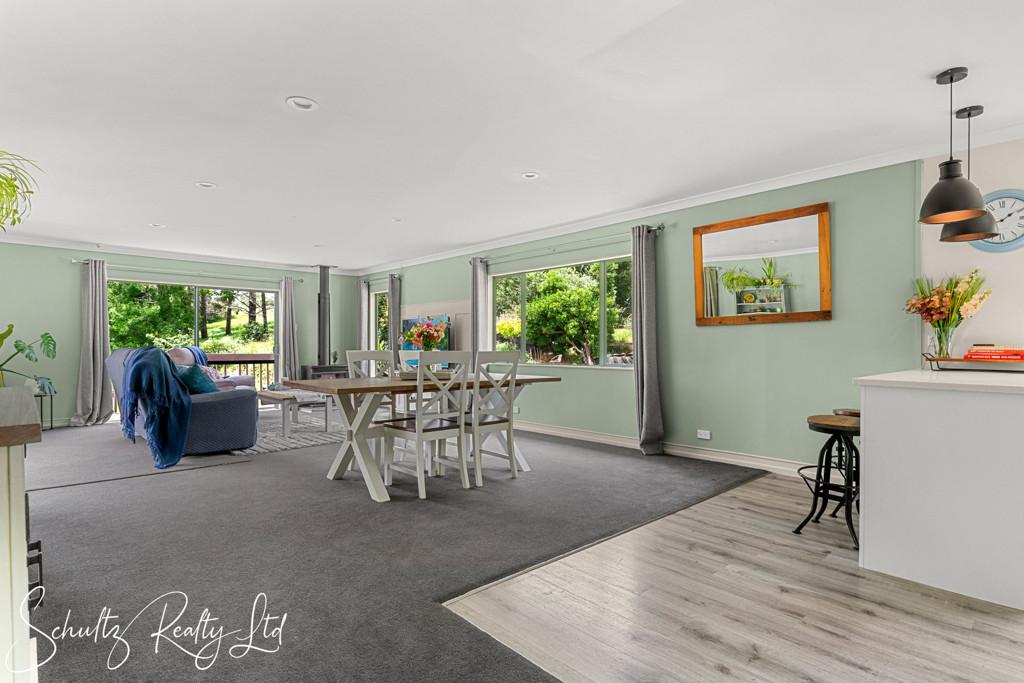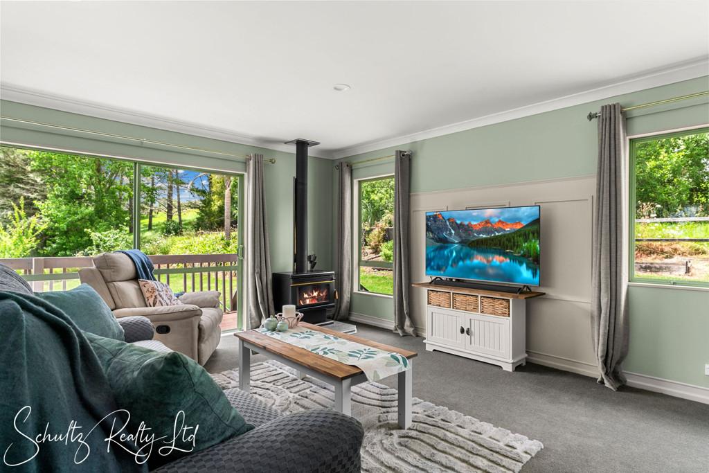 Designed for effortless living, the home is powered by solar and still connected to the grid. Step inside and instantly feel the warmth of the spacious open plan kitchen, dining, and living zone. The kitchen shines with its beautiful layout and generous bench space, perfect for cooking up feasts or hosting friends. This vibrant heart of the home flows out to a large partially covered deck, an entertainer's dream where memories are made year round. The lounge adds even more comfort with new carpet, a cosy fireplace, and a stunning panelled feature wall that brings a modern edge.