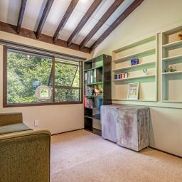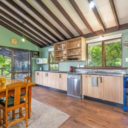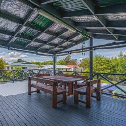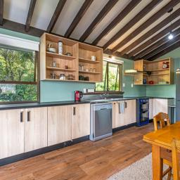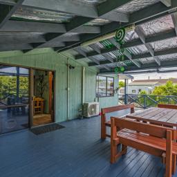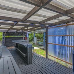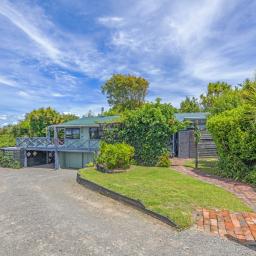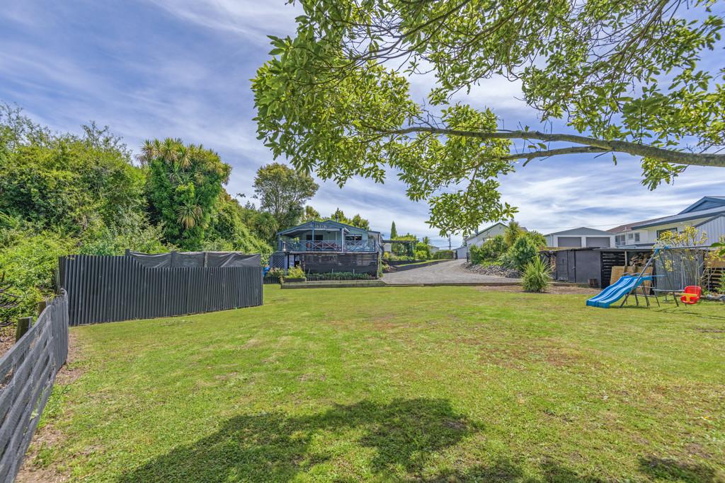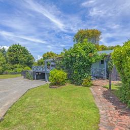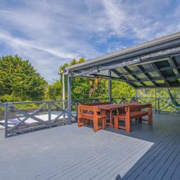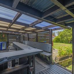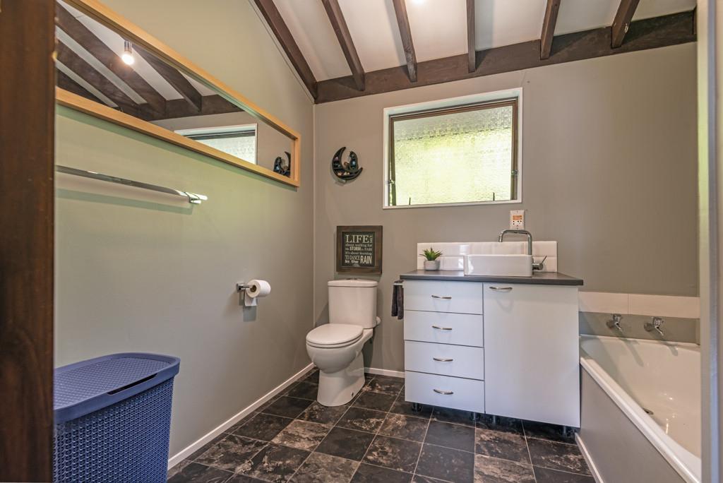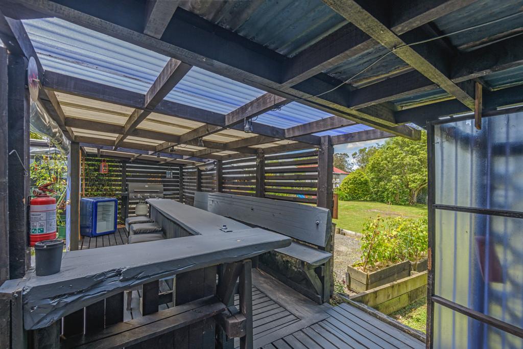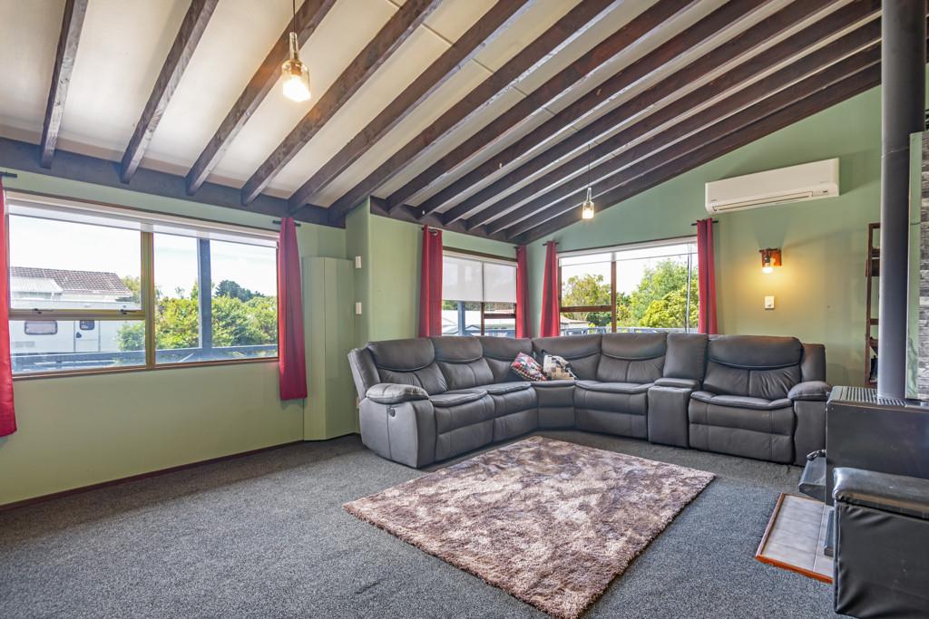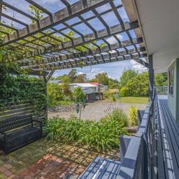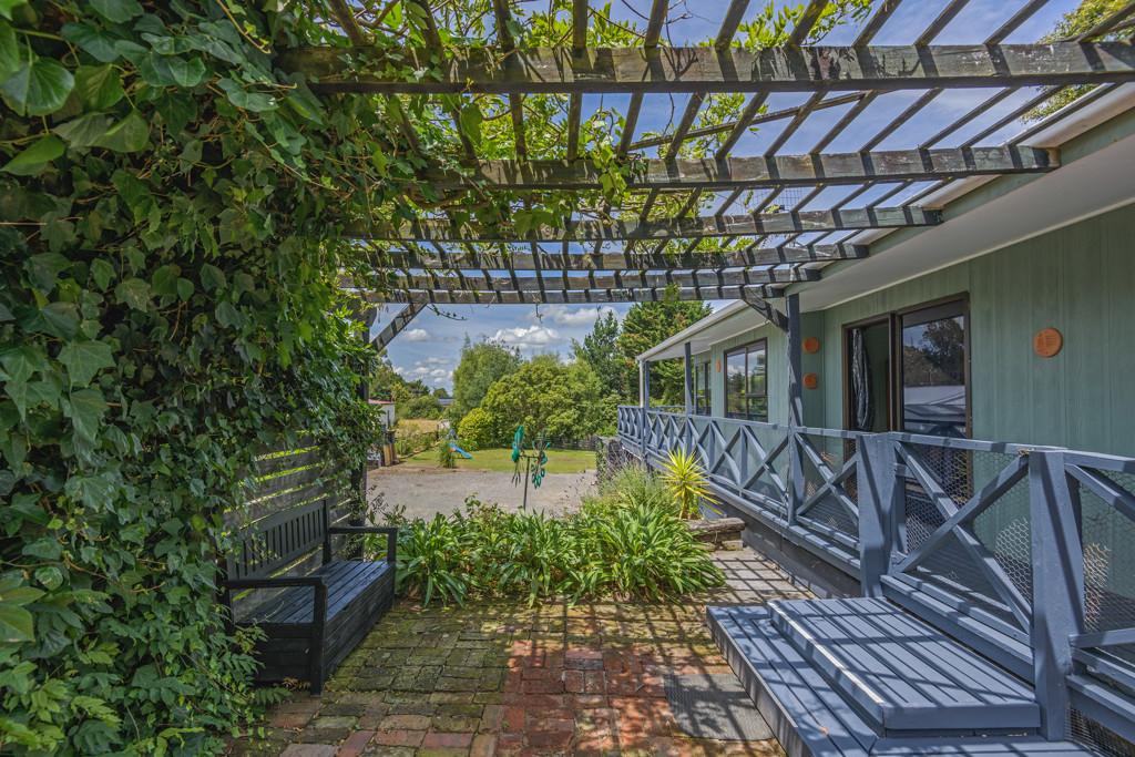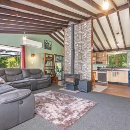 The heart of the home is the spacious kitchen that flows seamlessly into an open-plan lounge and dining area, anchored by a cosy log fire and complemented by a heat pump for year-round comfort. From here, step straight onto a substantial raised deck-a perfect spot for a quiet morning or gathering with friends. The deck is fully covered and wraps around the house, offering multiple spaces to enjoy the outdoors while staying sheltered from the elements.