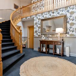 Other practical extras include a double garage, separate utility toilet, underfloor heating, two wood burners - one on wetback, solar keeping mains power in check, and broadband internet access.