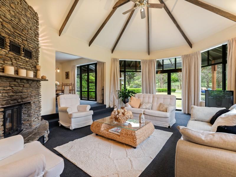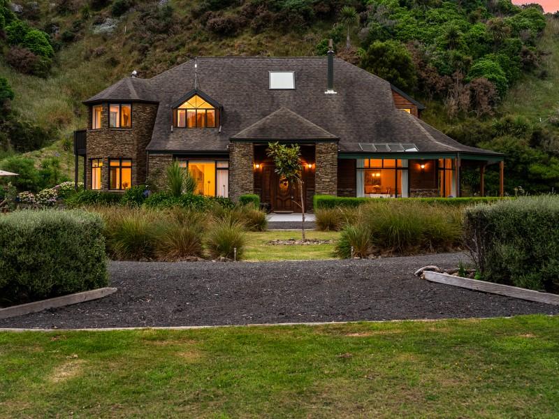 Some homes have a presence that's hard to put into words - and this is one of them. Built in the early 2000's with handcrafted schist stone and macrocarpa milled from trees grown on-site, this Makara masterpiece feels as though it's grown from the land itself. Nestled in a southerly protected valley surrounded by 3.57 hectares (approx.) of lawn, paddocks, and native bush, it's a rare offering that's every bit as functional as it is beautiful. Accessed by private drive a short distance from the road it exudes park-like peace and tranquility with no other visible structures - just silence and birdsong.
