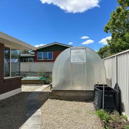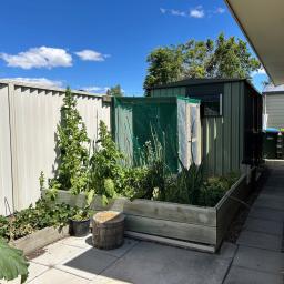 Outside, the property is designed for easy lock-and-leave living with no lawn to maintain. Enjoy productive gardening with a tunnel house and raised vegetable beds, all within a private, low-maintenance setting.