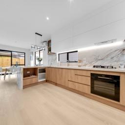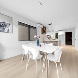 Step into a bright, open-plan living area with high stud ceilings that enhance the sense of space and light. The contemporary kitchen, complete with premium Bosch appliances and a gas cooktop, forms the heart of the home-ideal for everyday living and effortless entertaining.