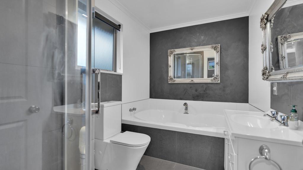 Designed for modern family living, the home offers five bedrooms, two separate living areas, and a dedicated dining space-ideal for growing families or those seeking adaptable work-from-home options. The master suite features a walk-in wardrobe, spa bath, tiled shower, and outdoor access to a well-designed BBQ area. The remainder of the home is serviced by another tiled shower and a separate toilet. With storage galore, there's room for the whole family's belongings and more.