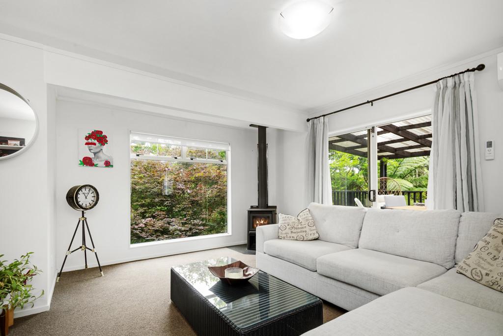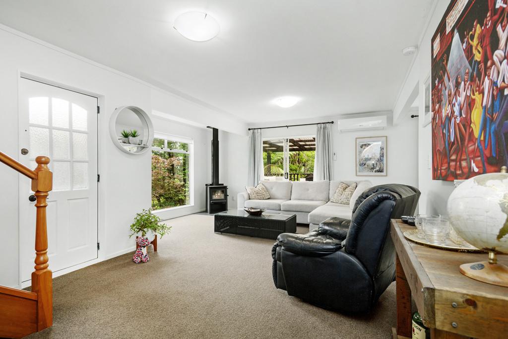 Comfort is assured year-round with both a heat pump and wood burner, while ample off-street parking and a carport complete the picture.