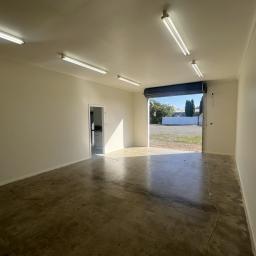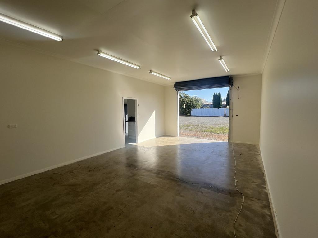 The property features a central ablution block and convenient kitchenette, ensuring comfort and functionality for daily operations. Dual roller door access, including one automatic opener, allows for easy vehicle and equipment access.