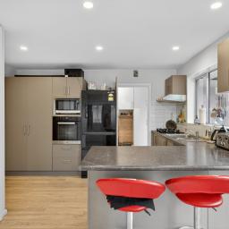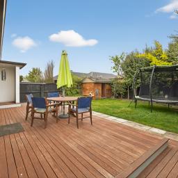 The expansive kitchen faces out to the fully fenced backyard; it has excellent storage and features a breakfast bar, so the kids can eat and keep the chef company! The kitchen flows seamlessly into the dining area and the outdoor deck, which is sheltered from those easterly winds. There is a large stand-alone double garage and a garden shed for extra storage.