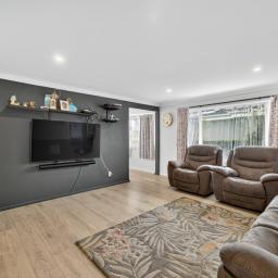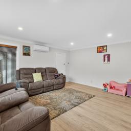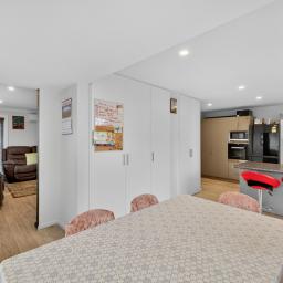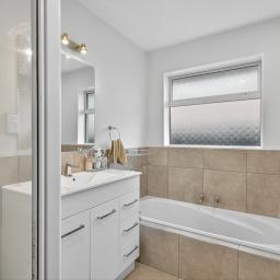 This home features 3 generously sized bedrooms. The master room has a built-in wardrobe & a heat pump for extra comfort. The light-filled tiled bathroom features a shower, a bathtub, perfect for young kids, and a heated towel rail. The large lounge space has wooden slat flooring and a heat pump for all-year comfort.