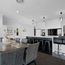 The modern home is easy to live in, with four double bedrooms, two bathrooms and a spacious, light-filled open-plan kitchen and living area where family life naturally comes together. Comfort is assured year-round with an internal wood fire plus airconditioning unit.