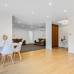 At the heart of the home is a stunning open plan kitchen and dining area, designed for both everyday living and entertaining. The sleek kitchen offers excellent bench space and storage, flowing seamlessly into the dining area and out to a sun-soaked deck - perfect for summer barbecues and relaxed outdoor meals.