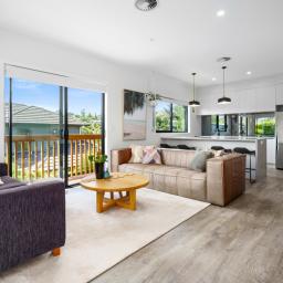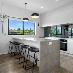 Set across two thoughtfully designed and manageable levels, the layout maximises light, outlook and everyday functionality. A sleek, standout kitchen complete with scullery anchors the home, flowing seamlessly into the open-plan living and dining zone. A separate lounge offers flexibility and can be closed off when privacy or quiet is desired.