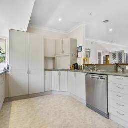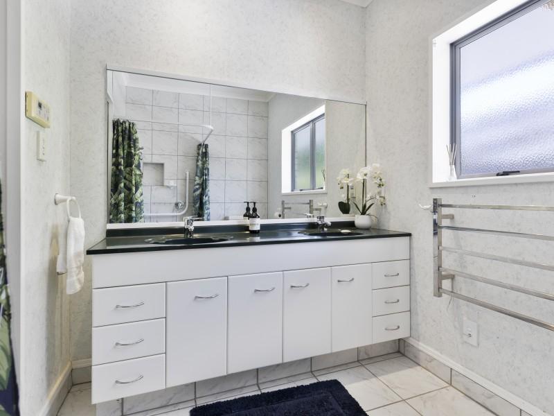 Inside, every detail has been considered for comfort and lifestyle. Three heat pumps, gas ceiling heating, HRV system, and a central vacuum system ensure year-round comfort. Two beautifully appointed bathrooms, including a spa bath and wet-floor shower, cater to busy family life, while abundant storage and generous living spaces create a practical yet luxurious environment.