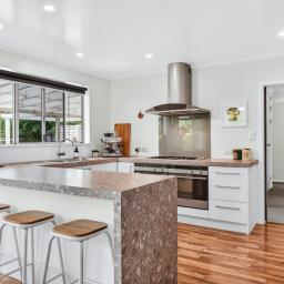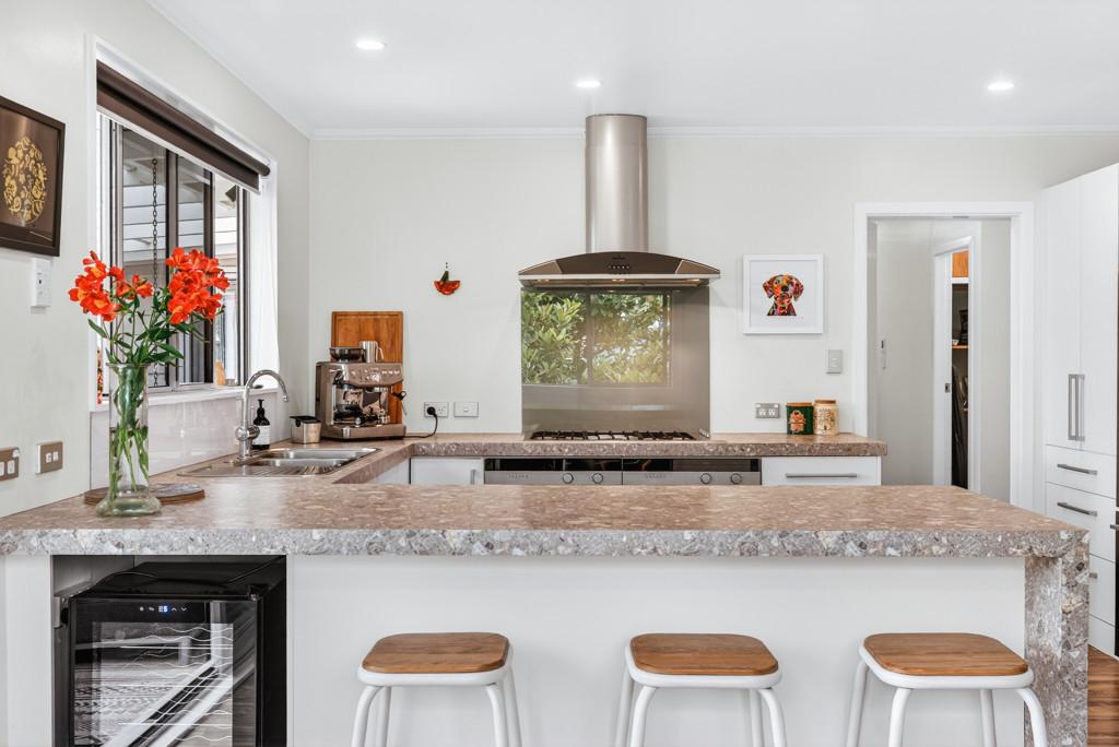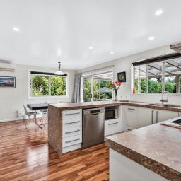 The sleeping quarters are tucked away in a separate wing with a family bathroom and separate laundry; the master is complete with a walk-in robe and ensuite. Added bonuses are everywhere you look, like mostly double-glazed windows, an HRV system, and you'll keep super cosy in the winter with a wood burner and a heat pump.