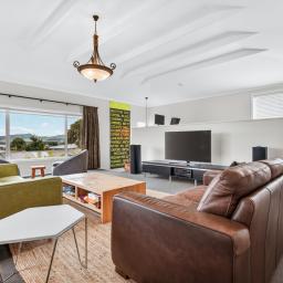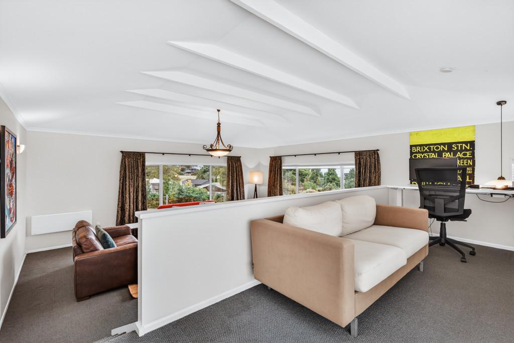 There is a gentle separation from the living, allowing for multiple entertainment zones. Stunning views across the treetops towards the lake and mountains are captured by large picture windows in the living room, with a separate area that is ideal for a large office space, or the perfect spot for toys and games, or a library.