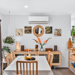 Step inside a home where comfort meets convenience. Bathed in an abundance of natural light, the interiors have been meticulously maintained, presenting a warm and inviting atmosphere that is ready for you to move in and enjoy immediately. The smart split-level design ensures privacy and flexibility, featuring two spacious bedrooms and a bathroom on the upper level, while a third bedroom and second bathroom are located downstairs, perfect for guests, teenagers, or flatmates.