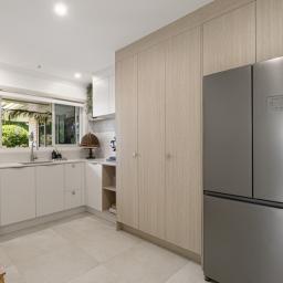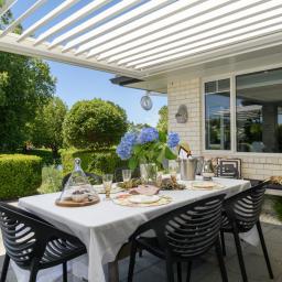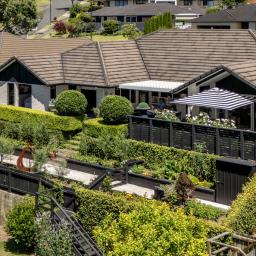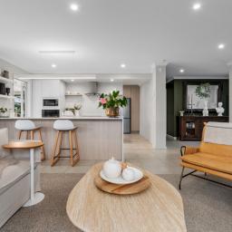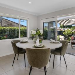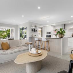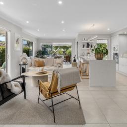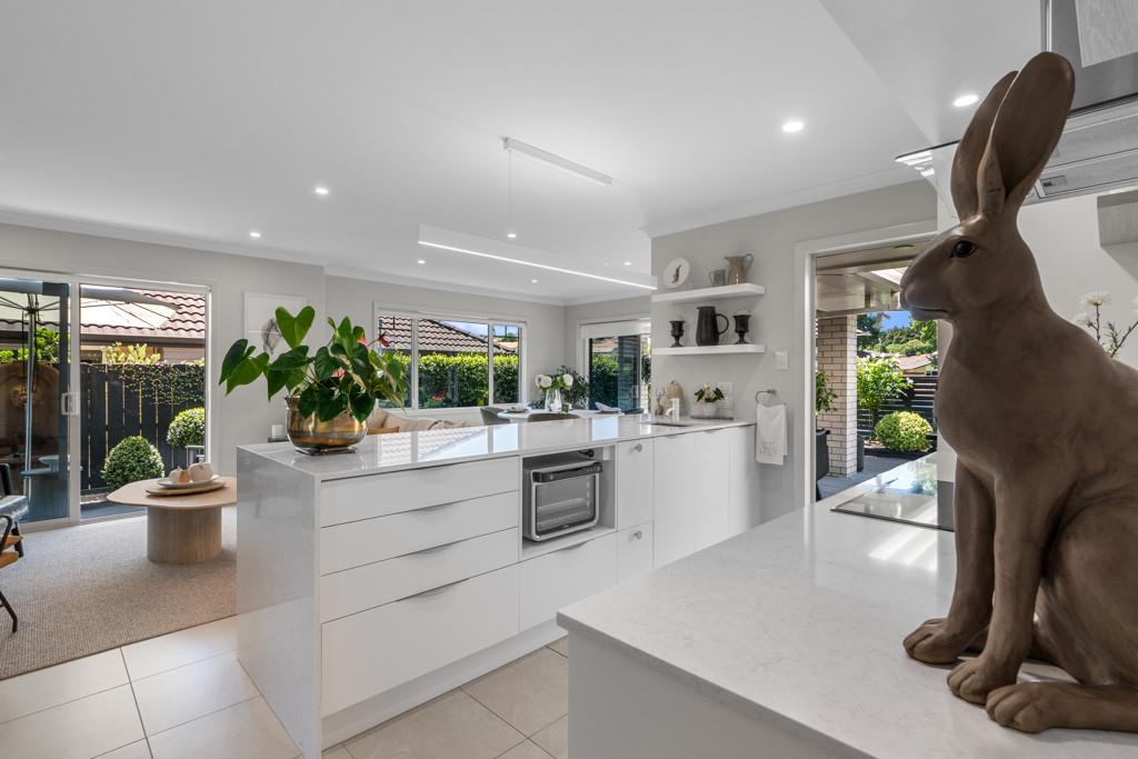 Open plan living and dining is anchored by a modern kitchen and direct access through to the sheltered patio area, where mature landscaping blends nicely with the reserve land to offer a sense of spaciousness and privacy.