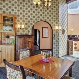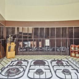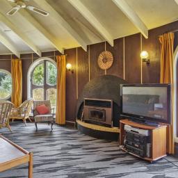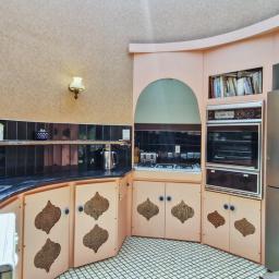 The kitchen is a retro-lover's dream, featuring unique cabinetry inserts and a curved layout that makes cooking feel like an event. It's spacious, functional, and full of character!