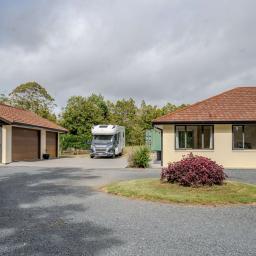 • Fully fenced flat land divided into paddocks with electric fencing (included), established gardens and fruit trees, excellent parking on extensive concrete areas, and great privacy
