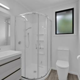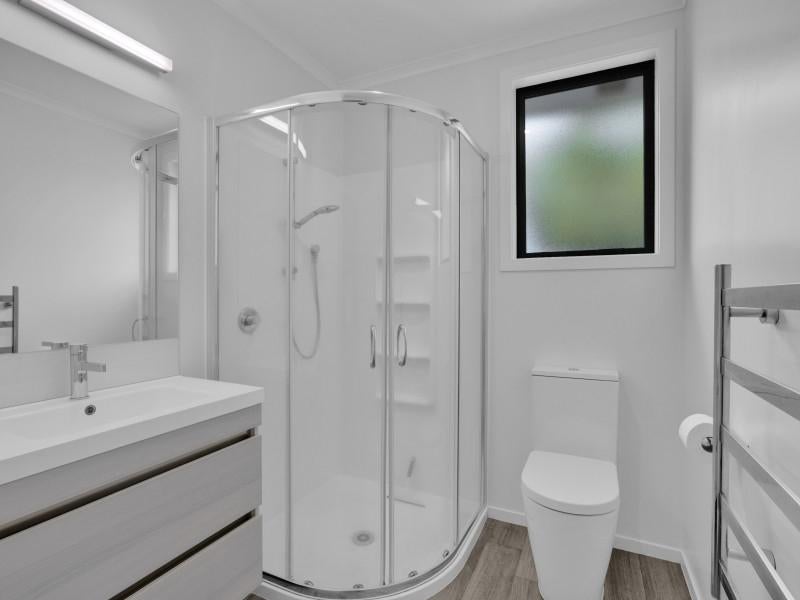 Set on a 225m² section, the home features two well-proportioned bedrooms and a contemporary family bathroom finished in neutral tones. The efficient layout maximises space and natural light, creating a warm and practical living environment.
