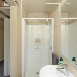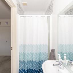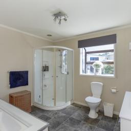 The family bathroom with a shower, bath and vanity and toilet, is on the top floor, servicing the third bedroom with ease.