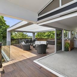 Open plan living flows seamless to the huge north facing deck with louvre roof, this will be the most popular spot for hosting family and friends. In-built speakers for both inside and out living areas adds to the ambience. The stylish kitchen includes plenty of workspace and a 'must have' scullery.
