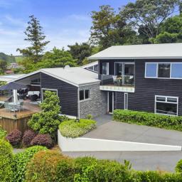 Commanding strong position in a highly sought after neighbourhood, privately positioned with its own driveway access. This multi-level home offers exquisite style, with superior space for family for both accommodating and entertaining - all with show stopping views. Striking cedar and shist clad the home offers stand-out design, North facing you can enjoy all day sun while taking in the sensational views and sunsets across to the sea.