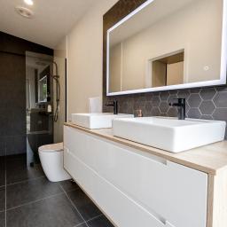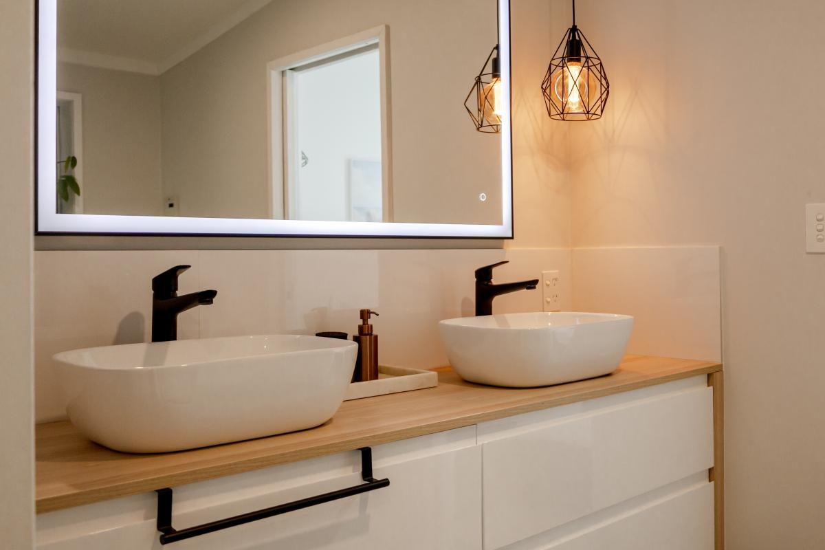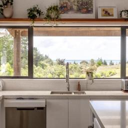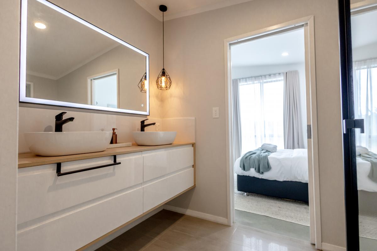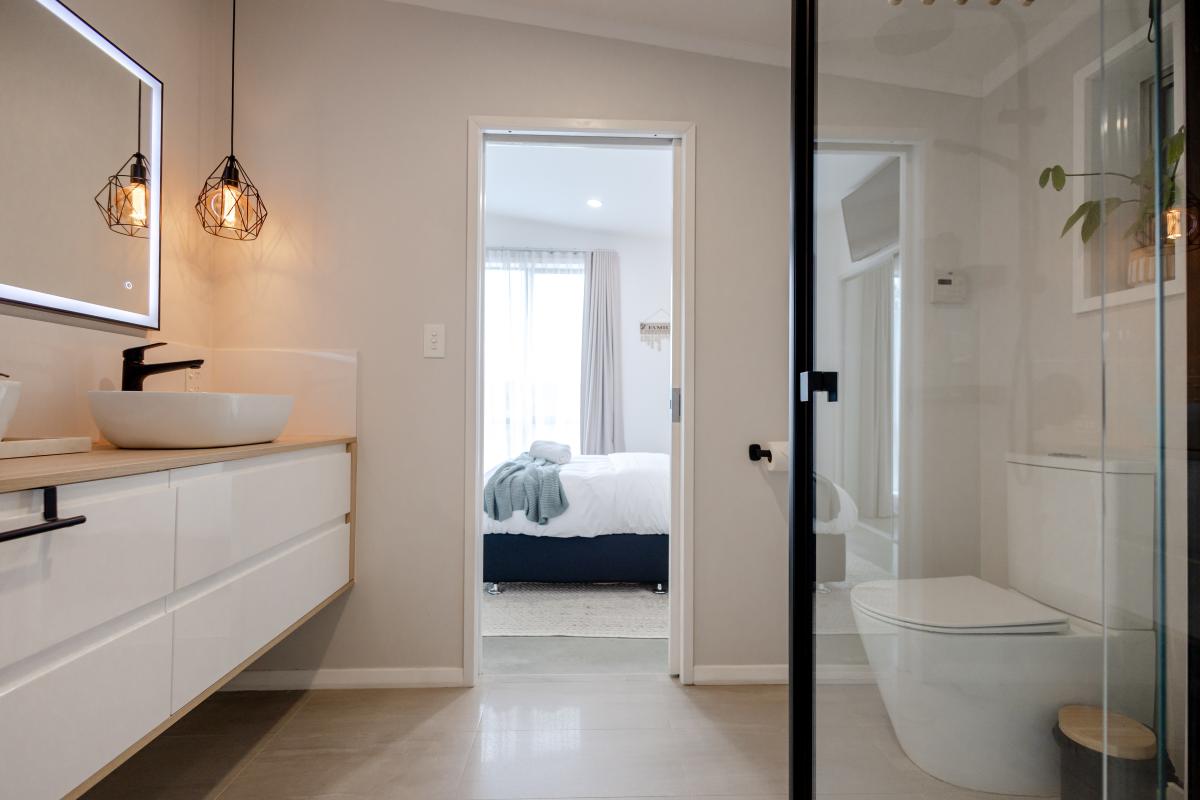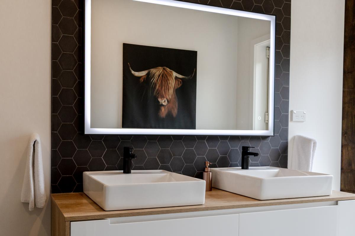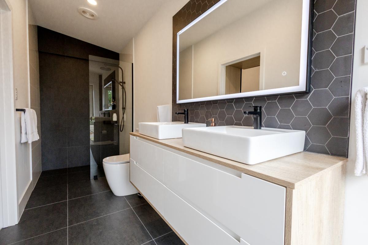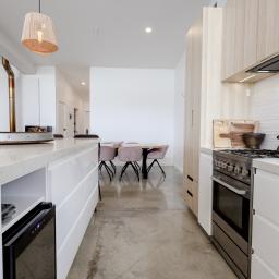 Inside, polished concrete floors and stone benchtops set a calm, refined tone. Light moves through the home from morning to evening and the open-plan kitchen, dining and living area flows naturally onto a fully covered, wrap-around deck, a front-row seat for every season, every colour shift, every pause in the day. The finish throughout is cohesive and beautifully resolved, with a show-home feel that carries from room to room.
