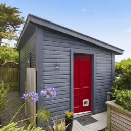 Step outside to a sun-soaked deck, the perfect spot to relax, entertain, and enjoy the soothing sound of the ocean. The property also includes a garden shed and a stand-alone studio, providing excellent extra space.
