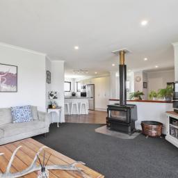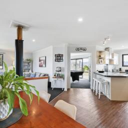 As soon as you enter this modern home you're greeted by a light-filled, open-plan kitchen, dining and living areas, complemented by an additional separate lounge for quiet retreat or movie nights. The home offers three generous bedrooms and two bathrooms, including a master suite with walk-in robe and ensuite. Double glazing, a wood burner, and gas hot water ensure year-round comfort and efficiency.