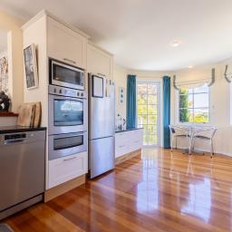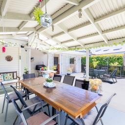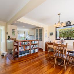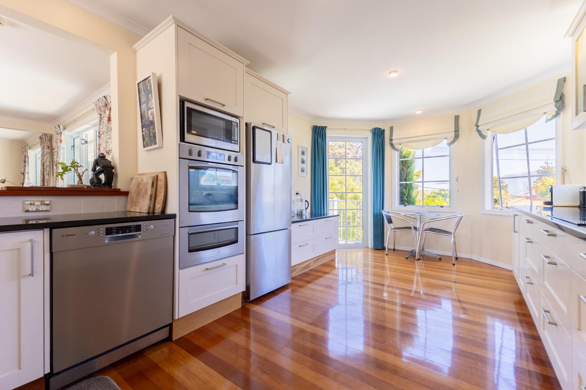 Originally built in the 1960s and carefully updated over time, the home unfolds across two generous levels, each with its own sense of purpose. A self-contained ground floor apartment creates exceptional flexibility, comprising spacious open living, a bathroom, two bedrooms, and outdoor entertaining space, while the main living level benefits a modernised kitchen, and has multiple outdoor zones on both the eastern and western sides. Timber floors, a wood burner, and a timeless kitchen anchor the upstairs living space, while a covered veranda provides a sheltered setting for year-round entertaining.