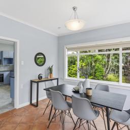 The beach is just around the corner, and the home's elevated position offers lovely views across the Paraparaumu Golf Course, the Tararua Ranges, and glimpses of the sea from the rear of the property.