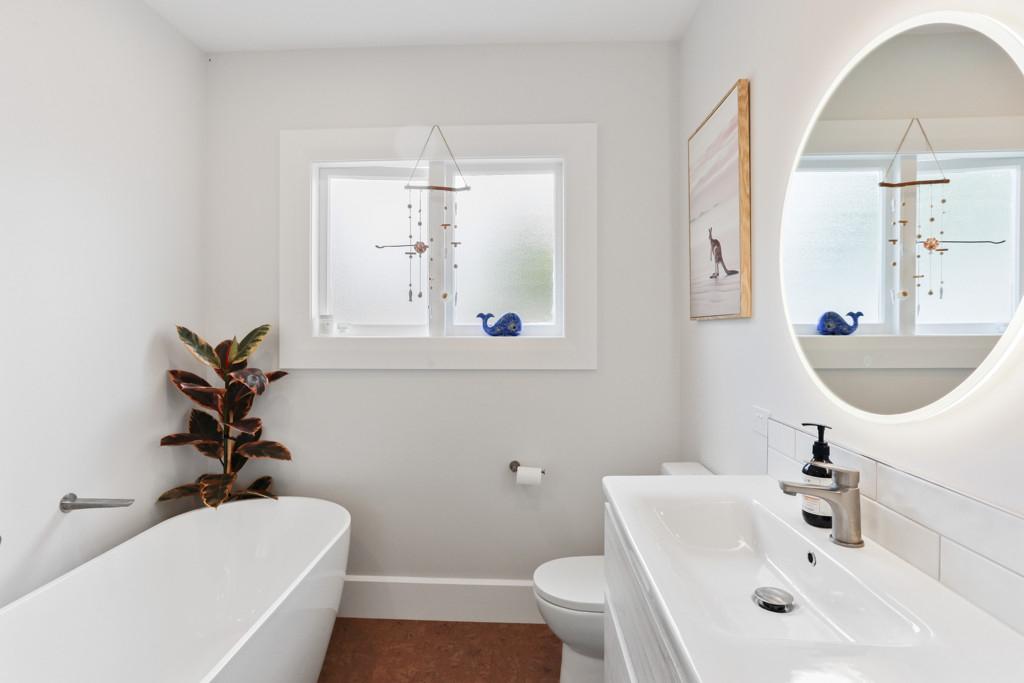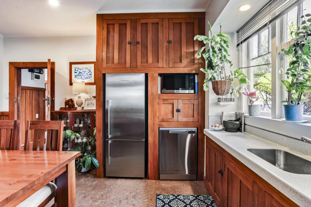 • Tastefully updated kitchen that remains true to the home's character, enhanced with modern appliances, updated benchtops, feature tiled splashbacks, and striking cork tile flooring