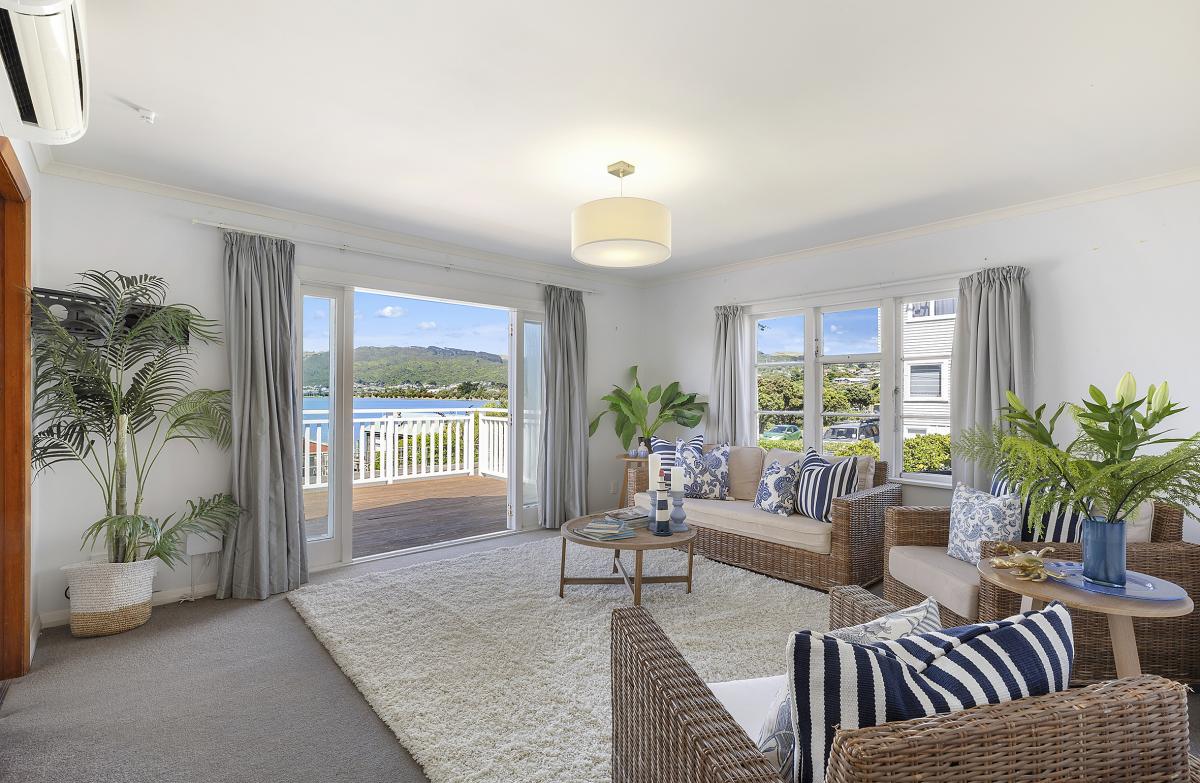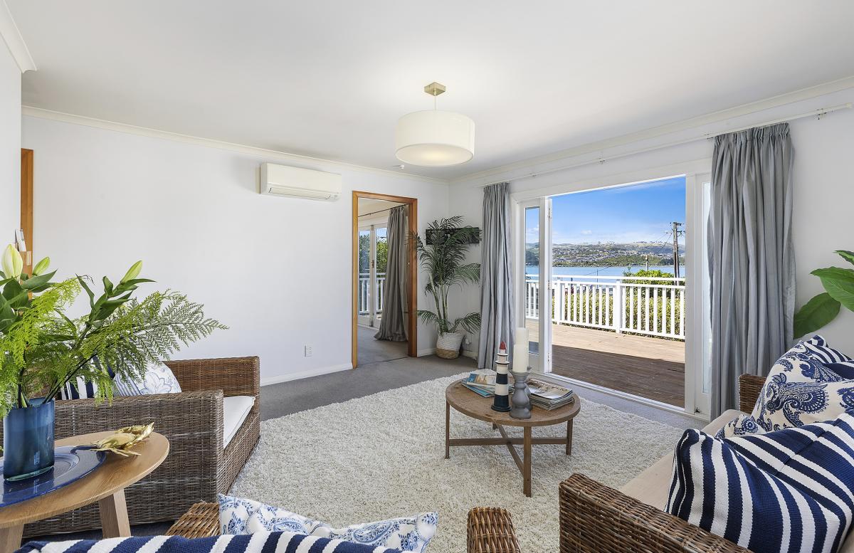 The separate living space with doors out to the front deck which extends the length of the home is perfect for winding down from a busy day while taking in the wonderful view on offer while enjoying the harbour activity.