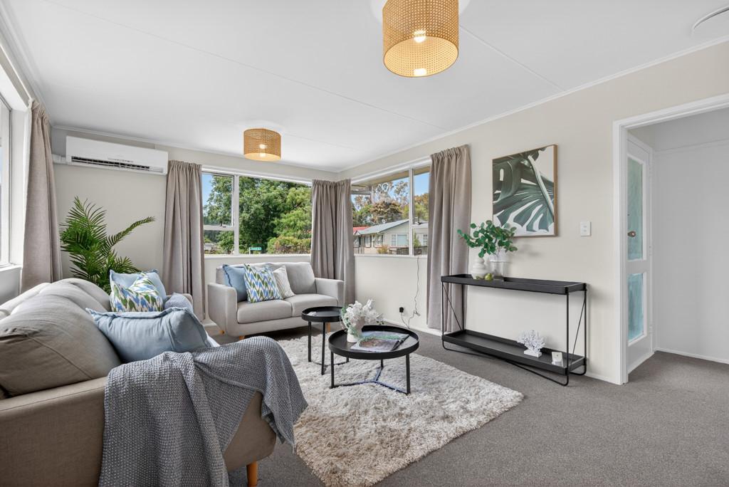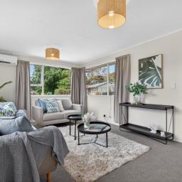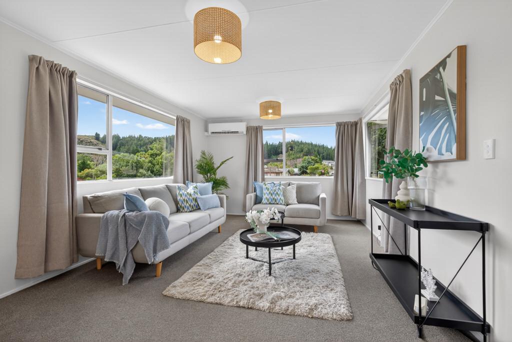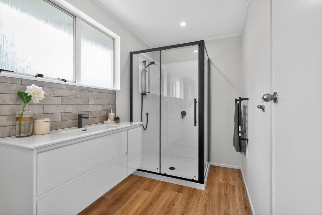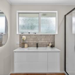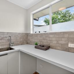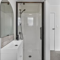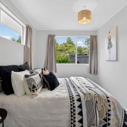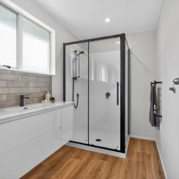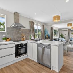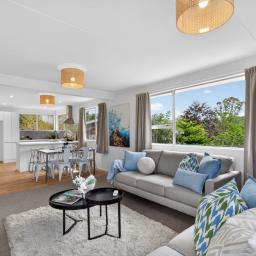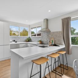 The open-plan kitchen and lounge combine modern aesthetics with comfortable, everyday living. Designed for both relaxation and entertaining, this light-filled space offers effortless flow and easy living, simply making it the heart of the home. Completed with a wall hung heat pump, ensuring year round comfort with efficient heating and cooling