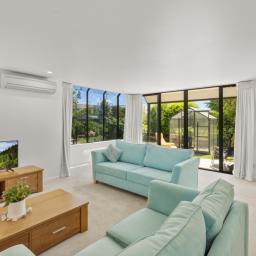 Privately positioned away from the road, the home is surrounded by beautifully established gardens that provide a peaceful, sheltered retreat. Mature plantings, sun-soaked outdoor areas, and carefully maintained landscaping enhance the sense of calm and make the garden a standout feature.