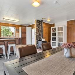 Inside, the home is designed for real family life. Four generous bedrooms plus a bonus fifth room, ideal as a home office, nursery or creative retreat with balcony access, provide options for growing families or working from home. A refreshed family bathroom, new plush carpet and a huge lounge create a warm, inviting atmosphere, while two fireplaces and a heat pump ensure year-round comfort. The open plan kitchen and dining area is practical, welcoming and perfect for both busy weekdays and relaxed entertaining.