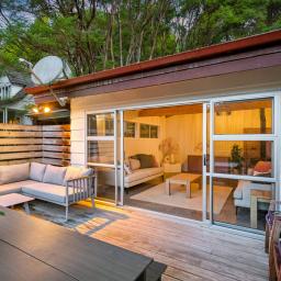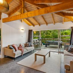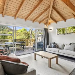 Tucked away on peaceful and tranquil Fawcett Road, this spacious family home offers the perfect blend of privacy, nature, and practicality. Surrounded by beautiful native bush and the sounds of birdsong, it feels like a true retreat while still being conveniently close to schools, beaches, and key amenities.