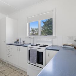 The home chef will love the spacious kitchen and dining area, where ample bench space and generous cabinetry create a functional and inviting environment. The family bathroom is practical and well arranged, while double glazing throughout the home adds to year-round comfort (bathroom window and outbuildings are not double glazed).