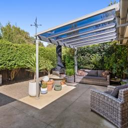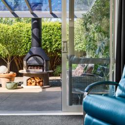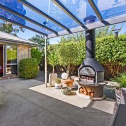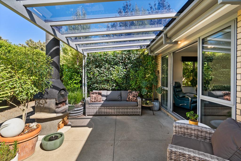 At the heart of the home, open plan living is welcoming, with two sets of sliders to the outdoors and seamlessly connecting to a private, sheltered patio. Covered by an Archgola, this outdoor space is perfect for year-round entertaining and is further enhanced by the bonus of a built-in pizza oven, ideal for hosting friends and family.