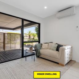 The main residence offers three bedrooms plus a dedicated study, a well-appointed bathroom and separate laundry. Light-filled open-plan living connects effortlessly to a sun-drenched deck, while the dining space opens through ranch sliders to a rear patio - perfect for relaxed family living and entertaining.