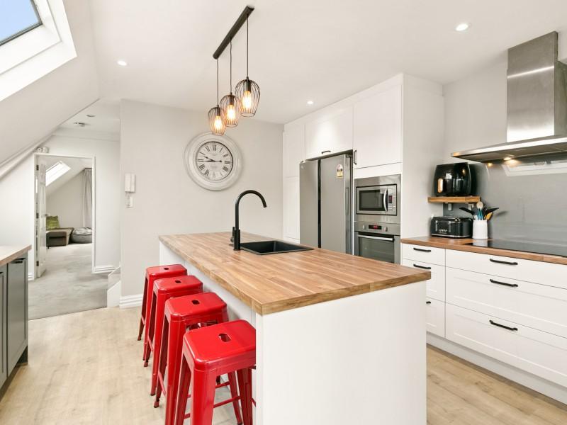 - Well-designed kitchen with great storage and easy connection to the conservatory dining area