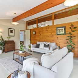 The home is light filled with floor to ceiling glass doors and windows, and exposed vaulted ceiling on the upper level. The lower is your quiet sanctuary to relax at the days end. With multiple bedrooms, family bathroom, laundry and separate toilet, families can be accommodated here.