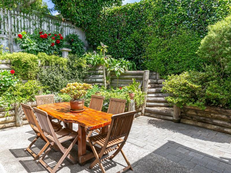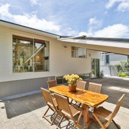 Drive on access with a large covered carport, and a separate single car deck. There is a sheltered bbq courtyard for outdoor entertaining, and you can enjoy lovely terraced gardens at the rear of the property.