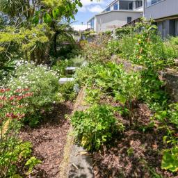 - Lush terraced gardens with paths leading you down through the bush to the local stream